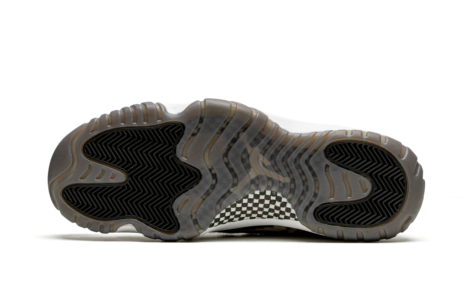 La semelle intermédiaire blanche met en valeur les lignes fluides de la chaussure et vient équilibrer la palette sombre de la tige. Sous le pied, la semelle extérieure icy translucide fumée ajoute une finition moderne et mystérieuse tout en assurant une excellente adhérence.