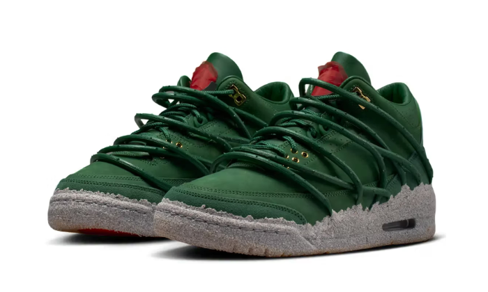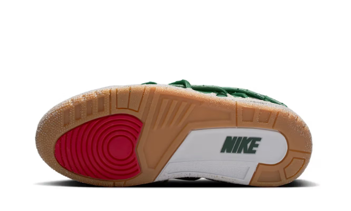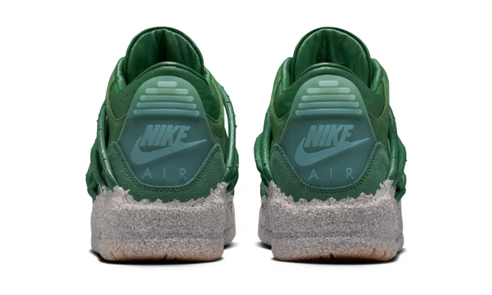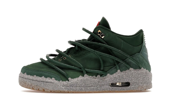 Le design associe une palette riche et expressive composée de Fir, Fire Red, Victory Green et Cement Grey, complétée par des accents Metallic Gold et une outsole Gum qui renforcent la dimension premium de la sneaker. Cette combinaison de couleurs reflète l’énergie artistique de la collaboration tout en conservant les codes emblématiques de la Air Jordan 3, comme sa construction structurée et son ADN basketball.
