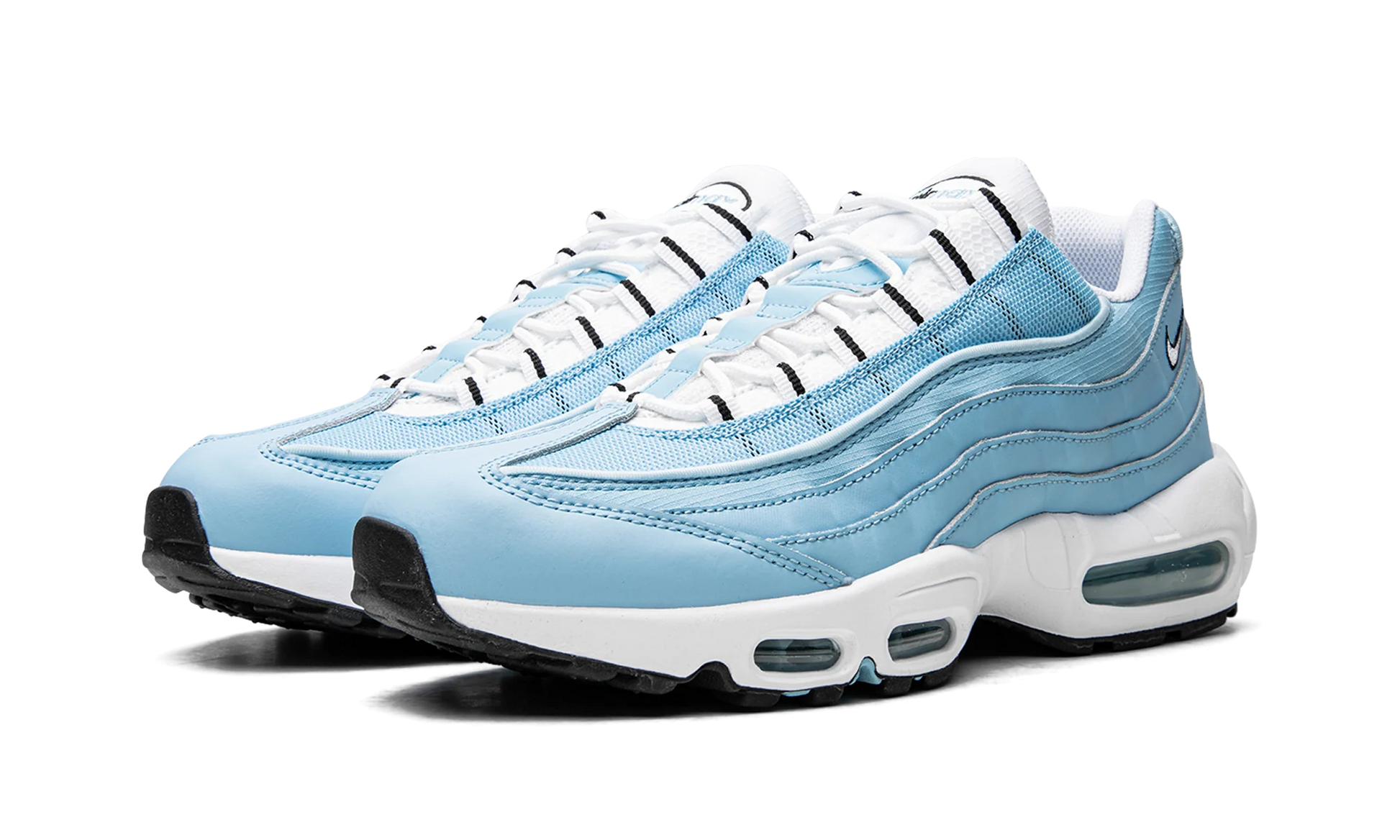 La tige combine des couches texturées en mesh respirant et en cuir premium pour créer une sensation de profondeur visuelle et de confort technique. L’emblématique gradation horizontale propre à la Air Max 95 se voit ici réinterprétée avec des teintes allant du gris neutre aux accents University Blue saturés, apportant une énergie visuelle forte et instantanément reconnaissable. Les touches Black et White viennent structurer et équilibrer l’ensemble tout en soulignant les lignes architecturales du design.